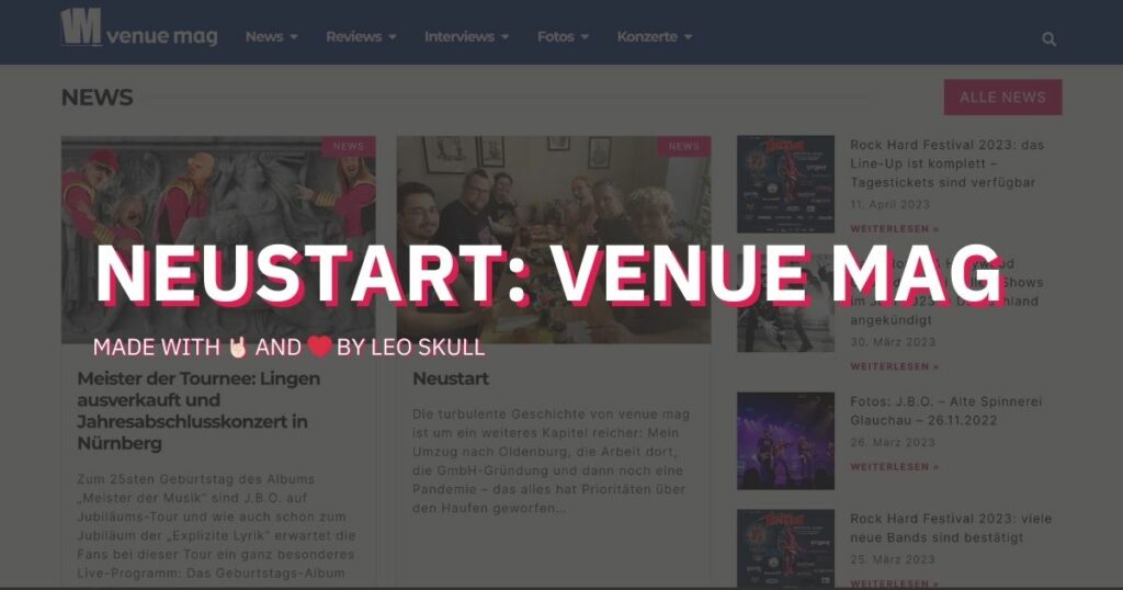 Das Musikmagazin venue mag bekommt einen Neustart. Und das nicht nur optisch, sondern auch was die Menschen angeht, die das Magazin in Zukunft mit Leben füllen werden. Denn viel ist passiert in den letzten Jahren und nicht zuletzt hat die Corona-Pandemie nicht nur Künstlerinnen und Künstler hart getroffen, auch das Team von venue mag war dadurch mit vielen anderen Baustellen mehr ausgelastet, was es davon abgehalten hat, sich mit voller Energie dem Magazin zu widmen.